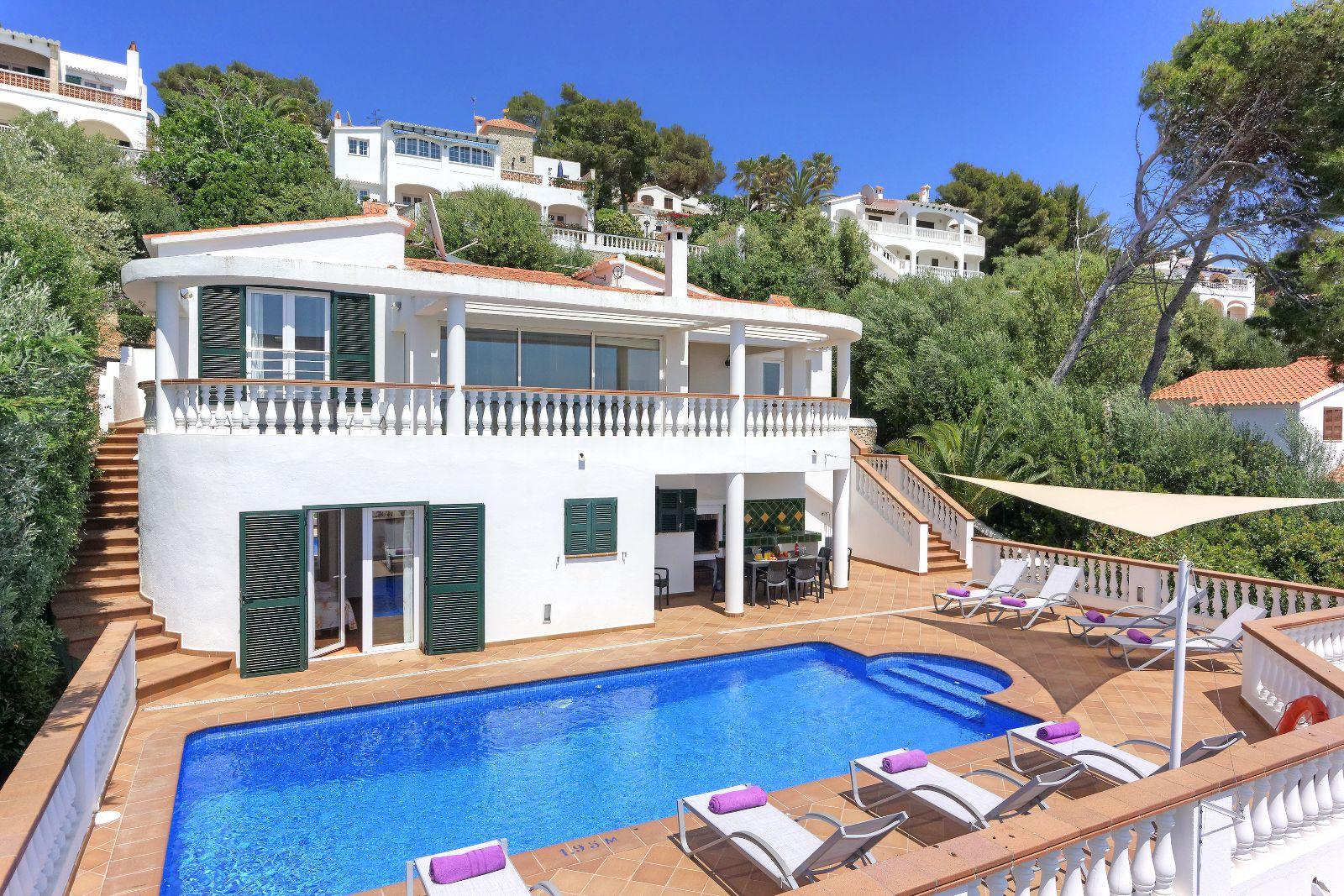 Rental of Villa Casa Bonita, with views to the Son Bou beach, on the south of Menorca. Ideal for large families with children, with private pool and 4 bedrooms. Good location and totally equipped.