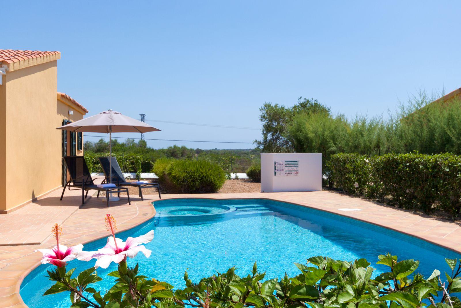 The Villas Menorca Sur 3 bedrooms are also part of the complex of 27 family homes located in the quiet nature reserve of Torre Solm. With capacity for 6/7 people are surrounded by a nice garden with native plants and each one of them has a private swimming pool with jacuzzi, where you can enjoy the relaxing bubbles and revel in a privileged environment.